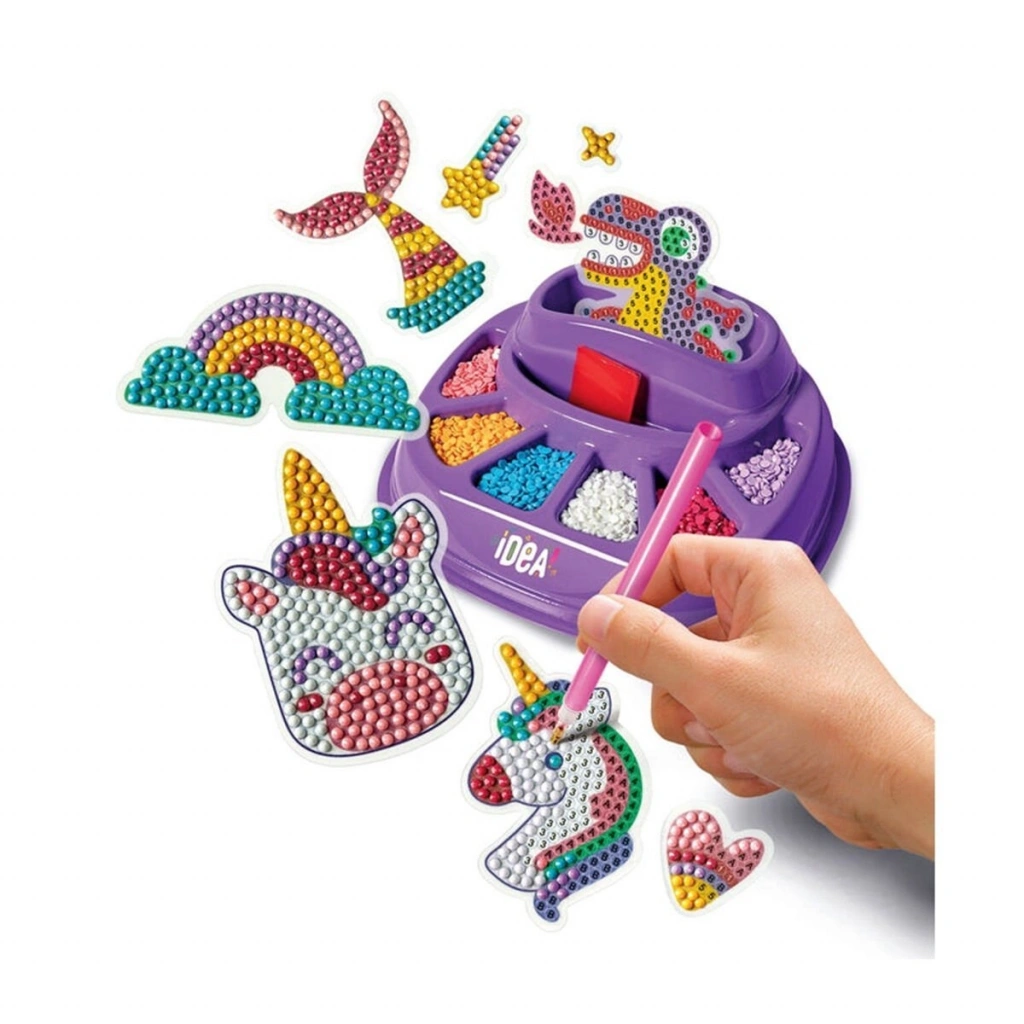 Renk kılavuzu ve özel kalemi sayesinde sticker'larınıza özgün ve eğlenceli tasarımlarla 3D taşları kolayca uygulayabilirsiniz. Bu versiyonda çizimler fantastik temalı ve sevimli tek boynuzlu atlar var!