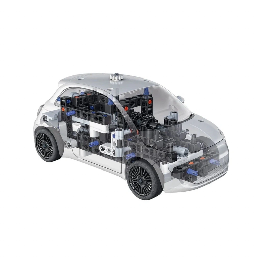 Elektrikli FIAT 500 modelini yapmak için eğlenmek için bir inşaat kiti.