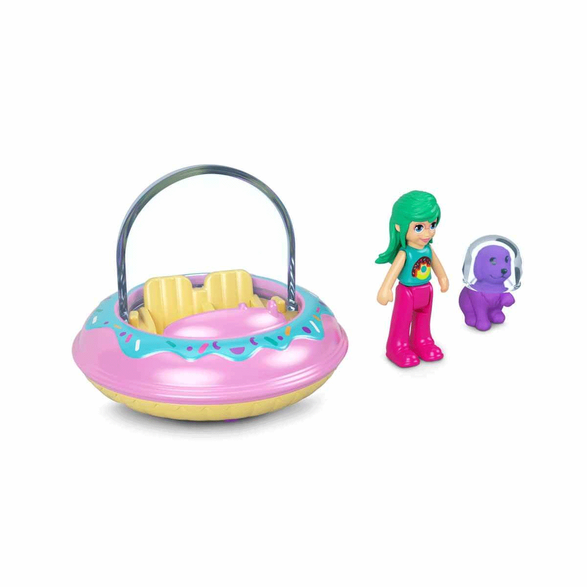 Renkler ve süslemeler çeşitlilik gösterebilir. Polly Pocket bebek ve araç setiyle çocuklar karada, havada ve hatta uzayda geçen macera dolu hikayeler anlatabilir. Her oyuncak paketinde bir mini bebek, bir mini evcil hayvan figürü ile üç tekerlekli, araba, hava taşıtı veya uzay gemisi gibi bir özel araç bulunur. (Her biri ayrı olarak satılır ve stoklarla sınırlıdır.)