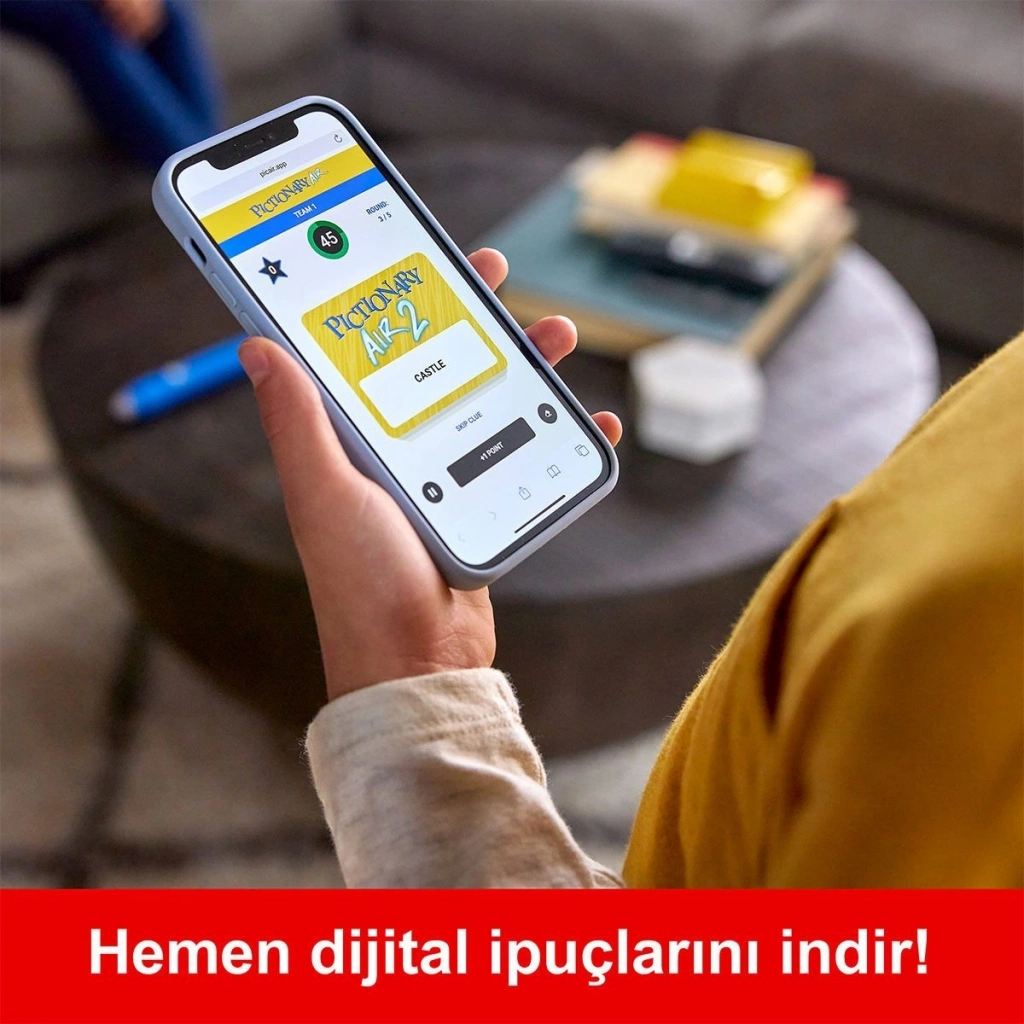 Pictionary Air™ 2 ile orijinal ödüllü çizim oyununa ileri teknoloji özellikleri eklendi. Havaya çizdiğiniz ipuçlarını bir cihazda görün veya TV'ye yansıtın*. Pictionary Air™ 2 güncellemesiyle oyuncular kalemi kullanarak puan ekleyebilir ve ekranı temizleyebilir. Ayrıca, her yaşa uygun dijital ipucu paketlerini indirerek çocuk partilerinde veya yetişkinler için oyun gecelerinde her yaştan aile üyesiyle birlikte oynayabilirsiniz.
