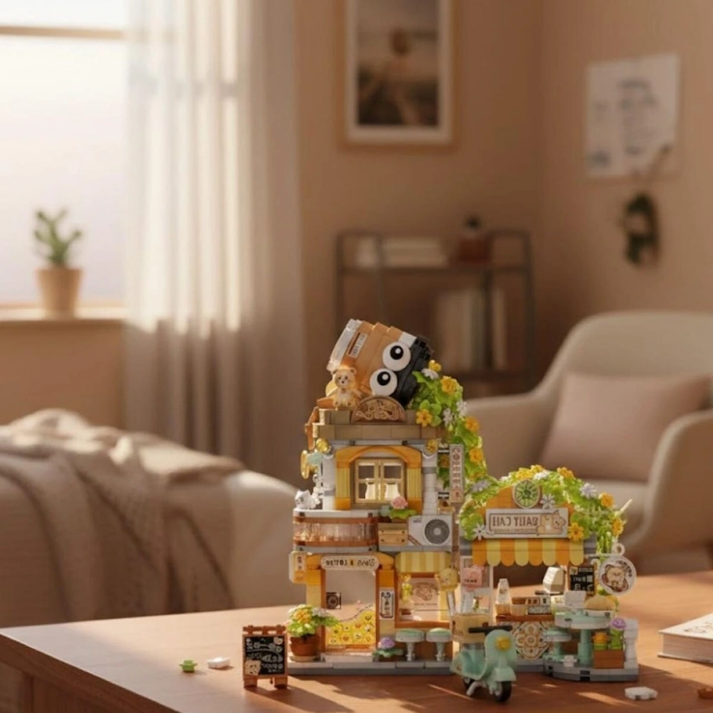 LZ-1382 LOZ KÜÇÜK AYI KAFE ÇİÇEKÇİ PONDA ÇAY EVİ 1077 PARÇA BLOCK OYUNCAK