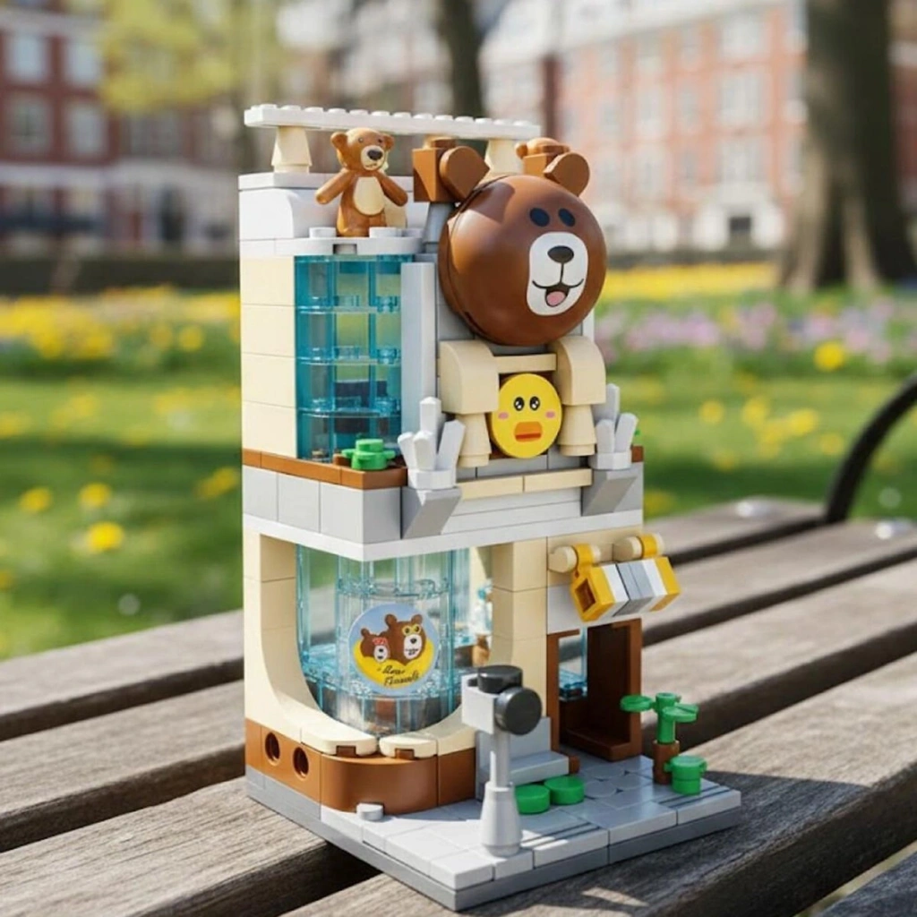 LZ-1382 LOZ KÜÇÜK AYI KAFE ÇİÇEKÇİ PONDA ÇAY EVİ 1077 PARÇA BLOCK OYUNCAK