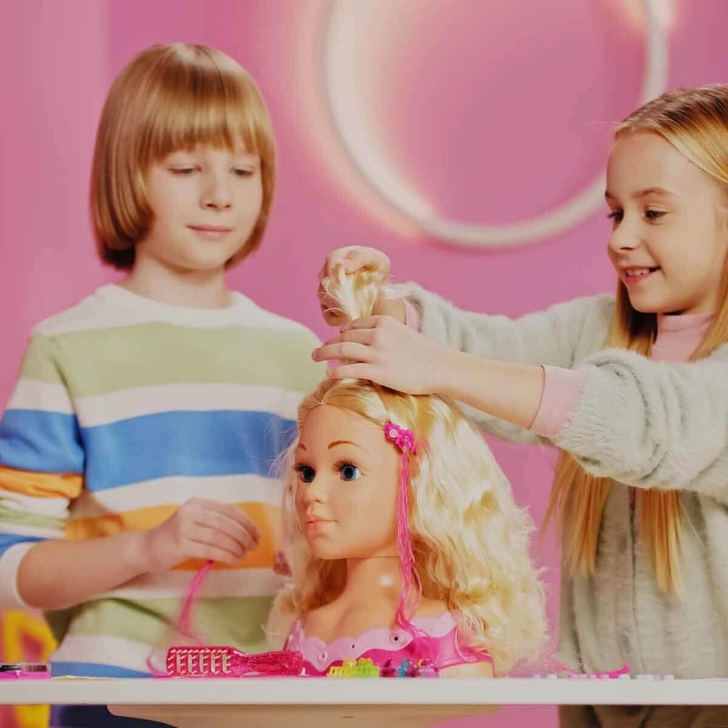 Şimdi de biraz makyaj yapalım. Far paletini al ve muhteşem bir makyaja hazırlan! Emma’nın gözlerine hangi renkleri süreceksin? Nasıl bir makyaj yapmayı düşünüyorsun? Parlak ve cesur mu yoksa yumuşak ve pastel tonları mı seçeceksin? Her dokunuşunla Emma biraz daha güzelleşecektir. Hepsi bu kadar mı? Tabii ki hayır! Boncukları saçlarına eklemek, farklı stiller yaratmak da tamamen senin yaratıcılığına kalmış. Emma Makyaj ve Saç Tasarım Büstü Oyun Seti ile Emma’yı güzelleştirmenin tam zamanı! Tarak, tokalar ve far paleti hazır… Senin hayal gücün de öyle! Nasıl bir şeyler deneyeceğine karar vermiş gibi görünüyorsun. Haydi, Emma’yı senin dokunuşları ile harika bir görünüme kavuşturalım!